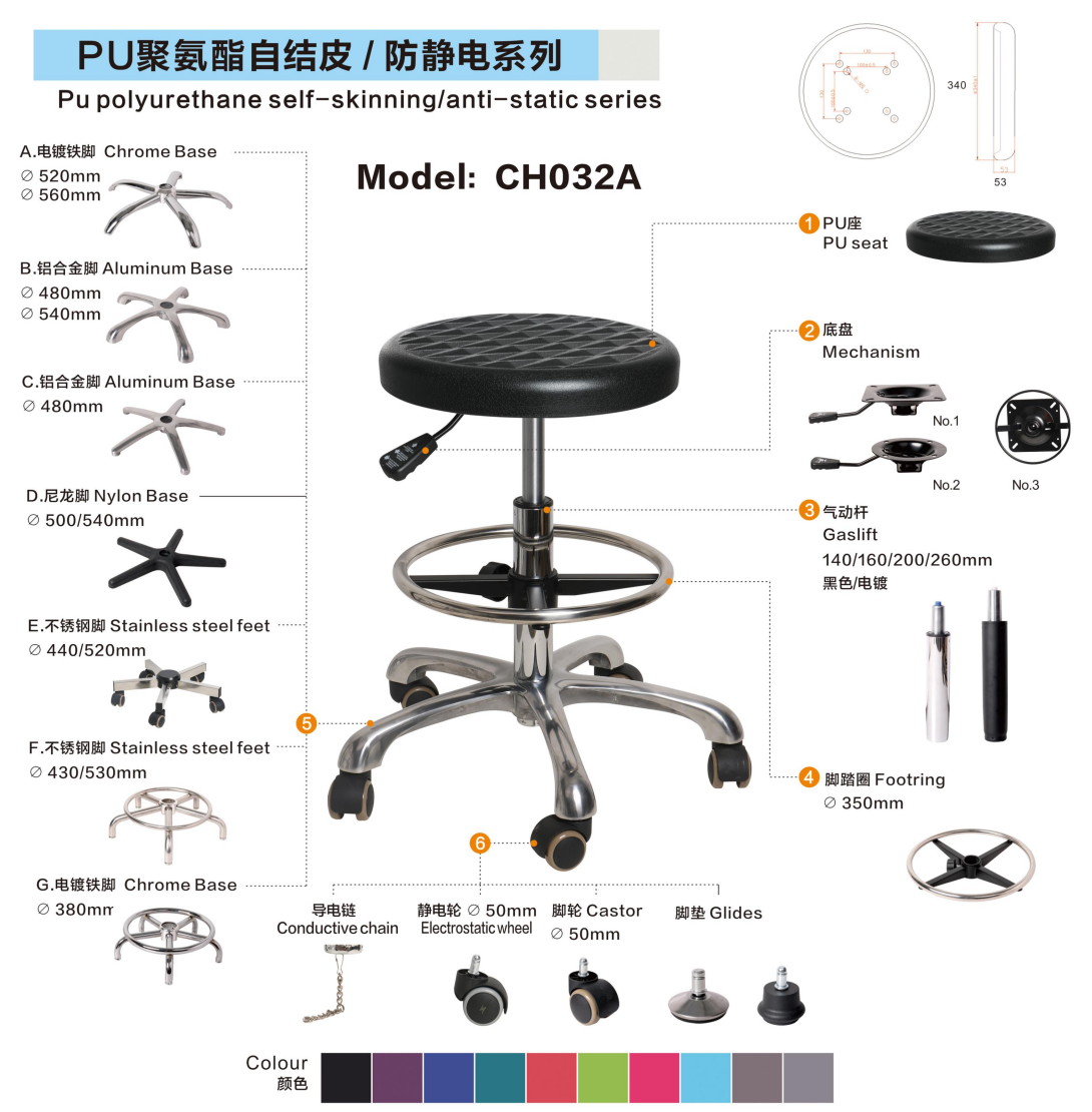 Customization Options: Color, caster type, foot ring, armrests