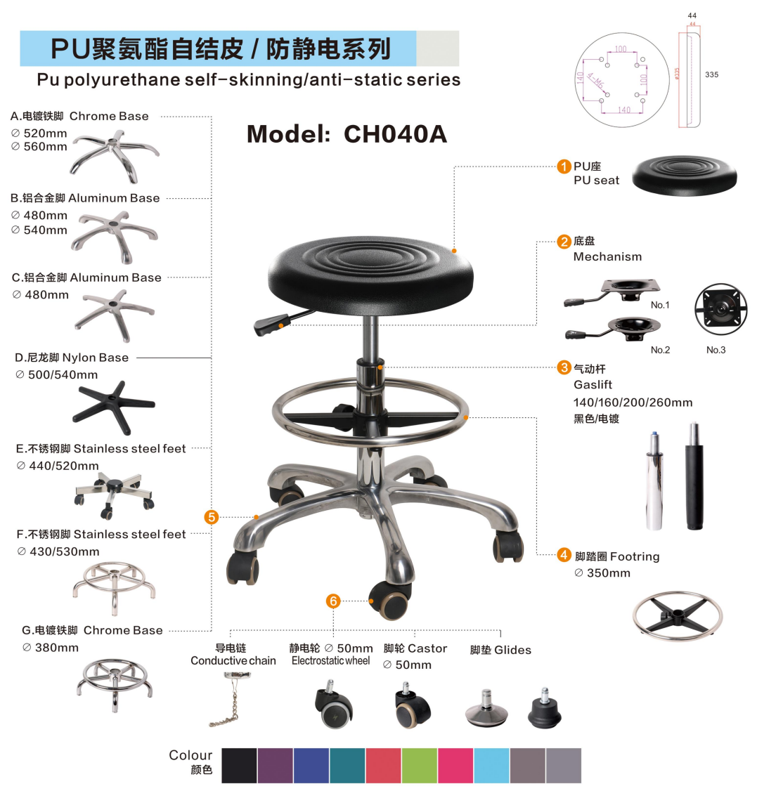Seat Material: Chemical-resistant Polyurethane (PU)